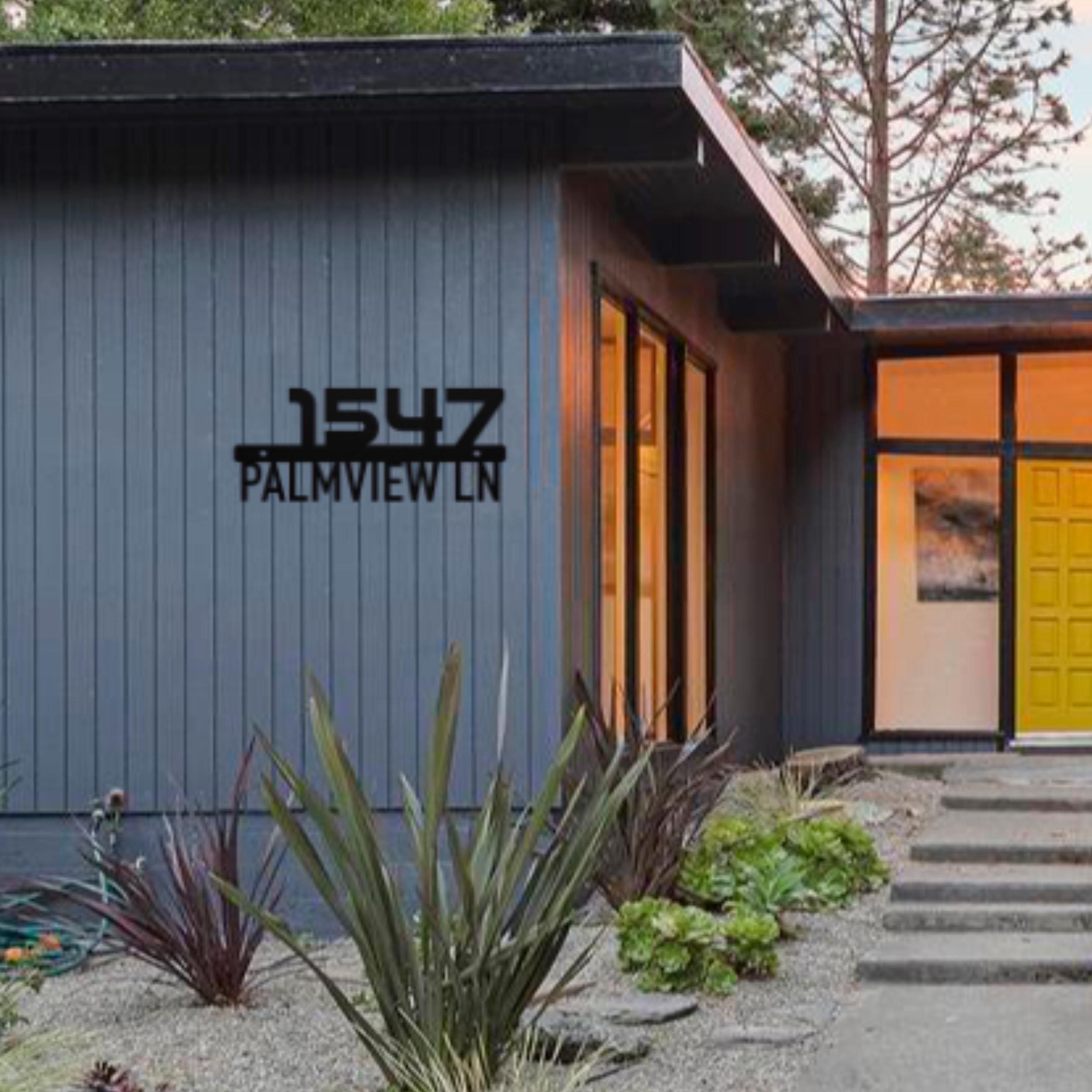 Retro Minimalist Metal House Numbers in Mid-Century Modern Font. Made with 18 gauge steel and powder coated in your choice of 5 colors, this sign is built to withstand the elements for years of enjoyment.