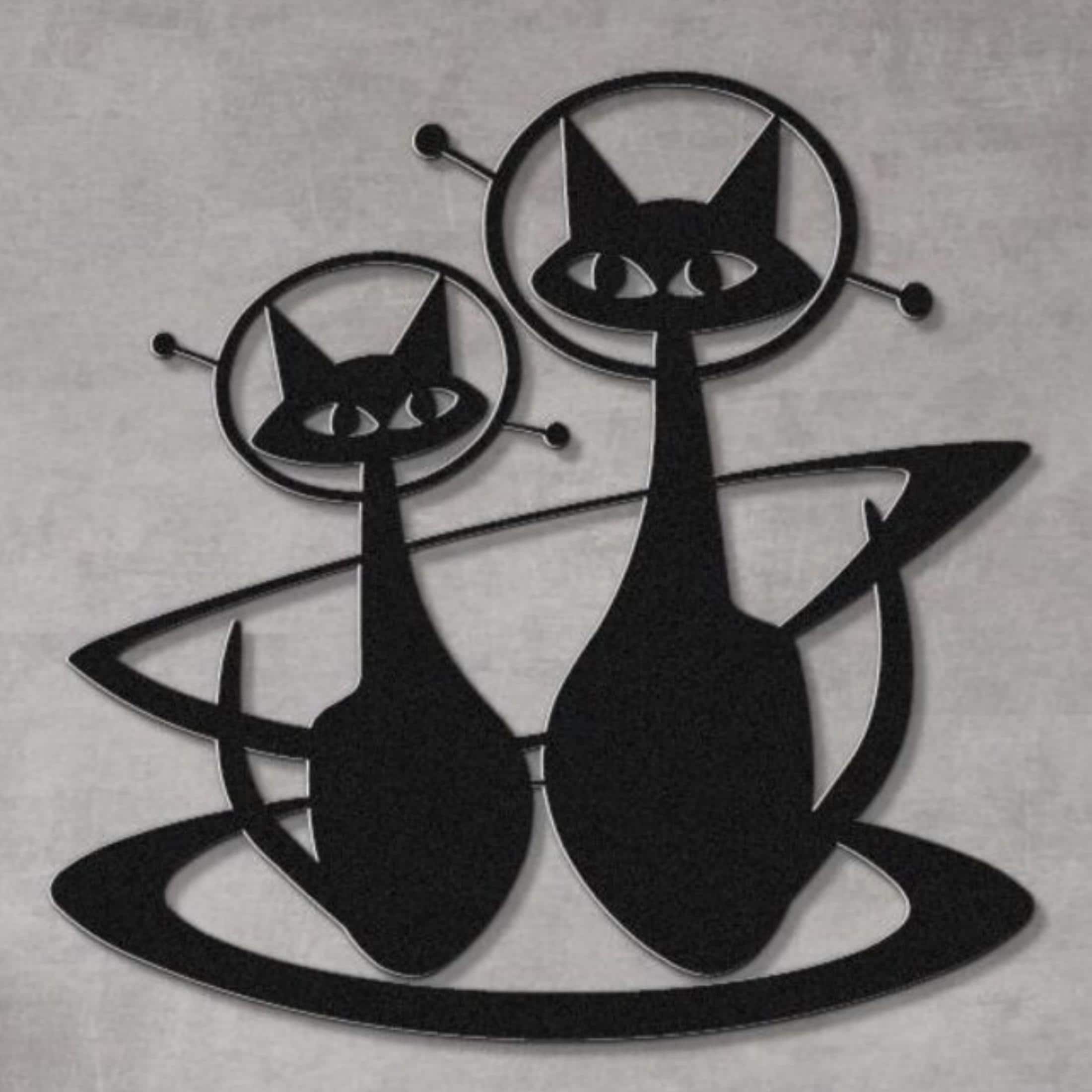 Atomic Age Space Cats Mid Century Modern Metal Wall Art